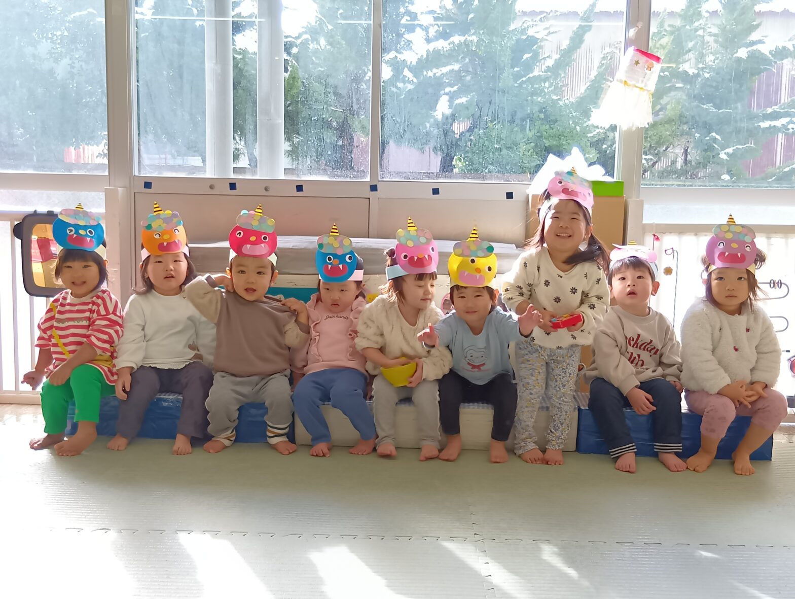 26.02.06今年もやってきた豆まきの日👹🫧 去年の豆まきが終わった日から 今年の豆まきの日を心配していた子もいたとか。 3日の朝になって おなかが痛くなった子もいたとか。 お休みしようか 悩んでた子もいたとか。 でも…