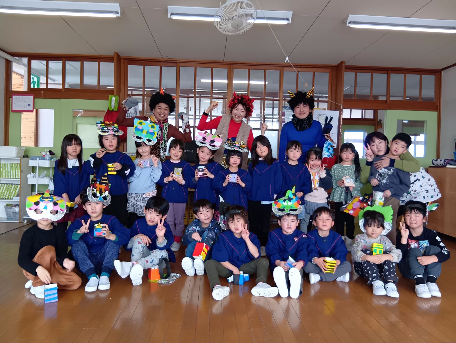 26.02.042月3日は節分。 幼稚園では、恒例の豆まきをしました! 鬼は・・・来るのかな?! 子供たちはドキドキしながら??? ホールで節分についてのお話を聞いたり、 自分たちで作った鬼のお面を見せ合いっこしたりしました。 ホールでみんなで「鬼のパンツ」を踊…