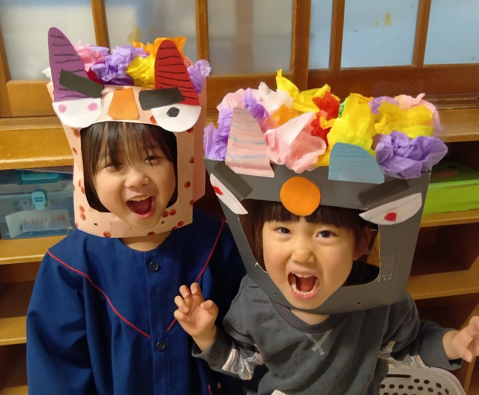 26.02.042月3日は節分👹 ドキドキしながらも 当日までの日々も楽しみました✨ ~お面作り~ 紙袋の提供ありがとうございました。 ハサミの工程多めの製作となりました✂️ まっすぐだけでなく、曲線もうまく 切れるようになってきまし…