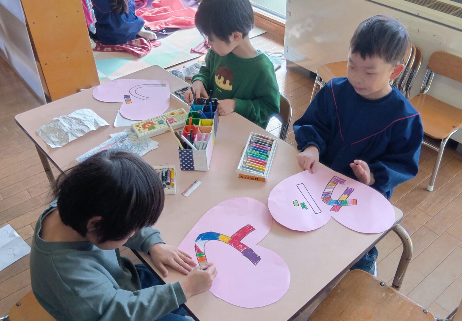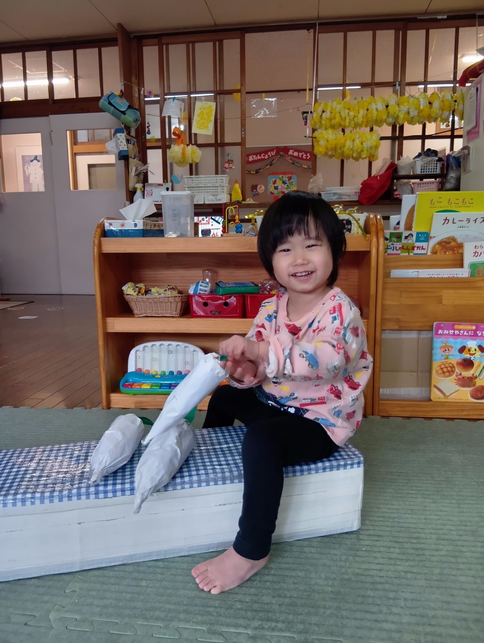 26.03.12みんなで2階「ちゅうりっぷくみ」へ 遊びに行きました。 おにいちゃん おねえちゃんと一緒に おはようのご挨拶♪♪♪ ゆり組さんも おはようのうた 歌えるよ (o^―^o) 元気にお返事「はーい」もできました。 さあ!一緒に遊ぼう! 最初はちょっと…