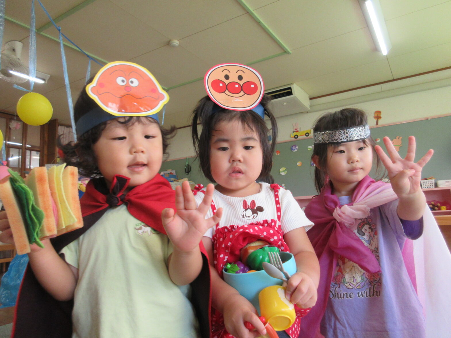 25.09.05アンパンマンが大好きな子供たち。 好きなキャラクターを聞いて、 それぞれのお面を作ってみました。 推しのお面をかぶると それだけで 気持ちが UP ⤴⤴ 電車遊びでも・・・ パ…