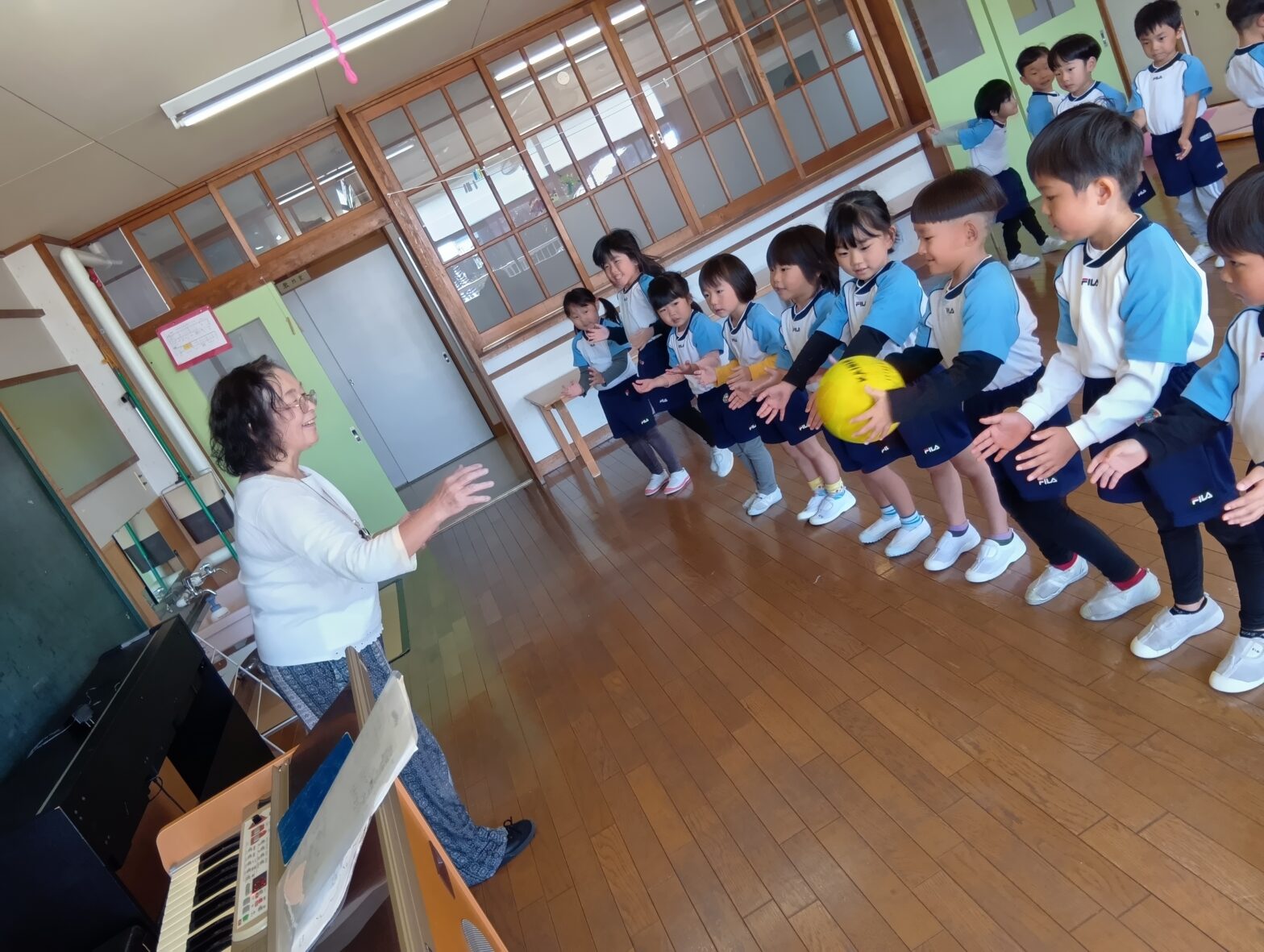 25.10.24いつも楽しいリトミック♪ 今回もお部屋に入るところから リズム遊びがスタート!✨ おじいちゃんおばあちゃんに変身👴👵!? 腰を低くして…